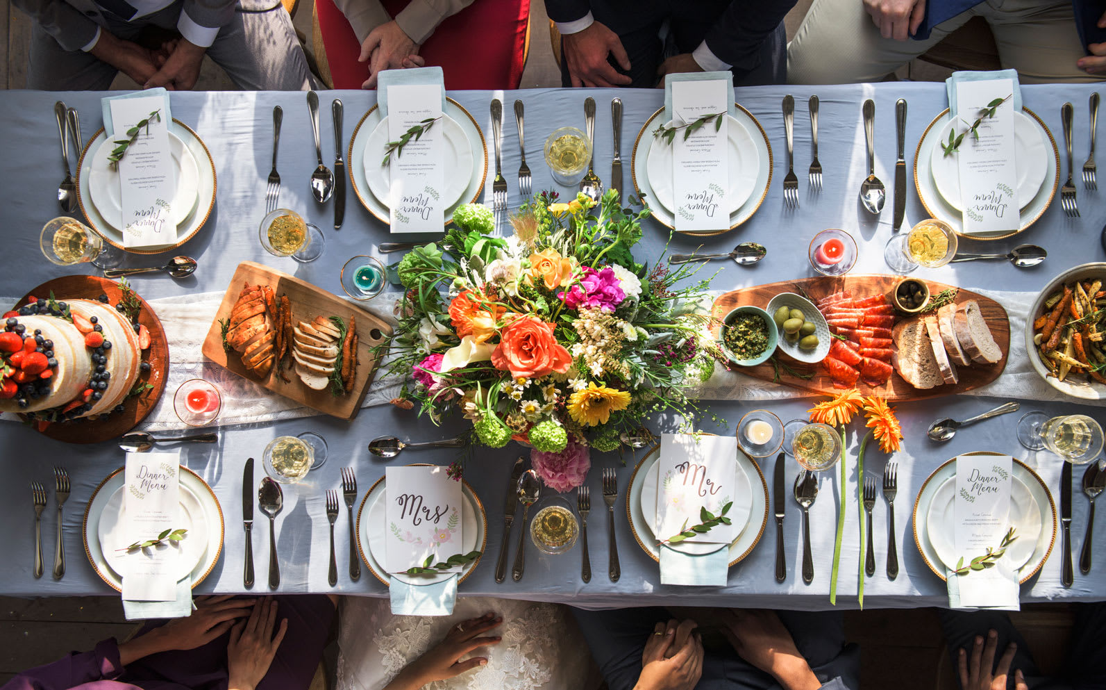 The logistics involved in planning an event vary in each case. Lloyd ticks off a list of some of the most frequently encountered issues: “Location, weather, transportation, vendor quality control, budgets, client personalities, and interpersonal family relationships.” Knuth points out that quite a lot of logistical planning takes place well before the actual event. For outdoor events in particular, site visits are part of the process of assessing parking, power, water, restrooms, and other requirements. And such events, she adds, can include planning for “everything from transporting guests to building a venue in a field.”